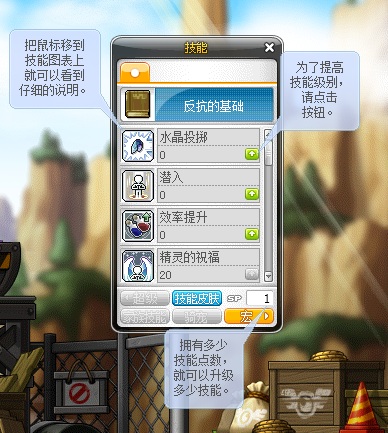 2、升级后会获得技能点,用来学习职业技能。同时还会获得属性点,