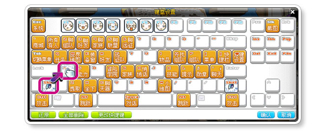 2、冒险岛初始键盘界面,可以根据使用习惯,在【系统—键盘设置】中更改