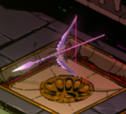 【技能】是扔出神盾,在敌人和墙壁之间弹来弹去造成伤害。四把武器里最强最实用的武器。