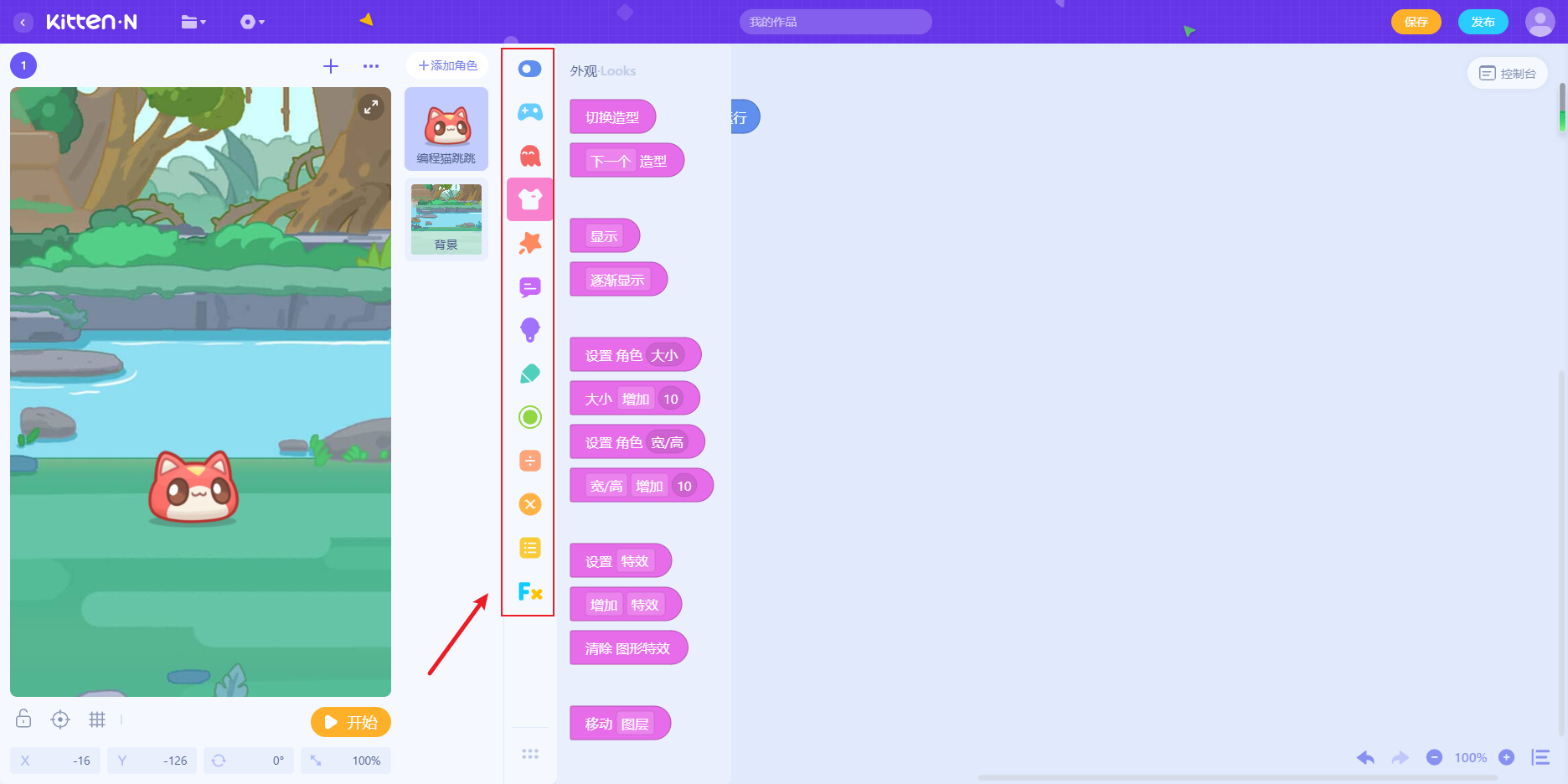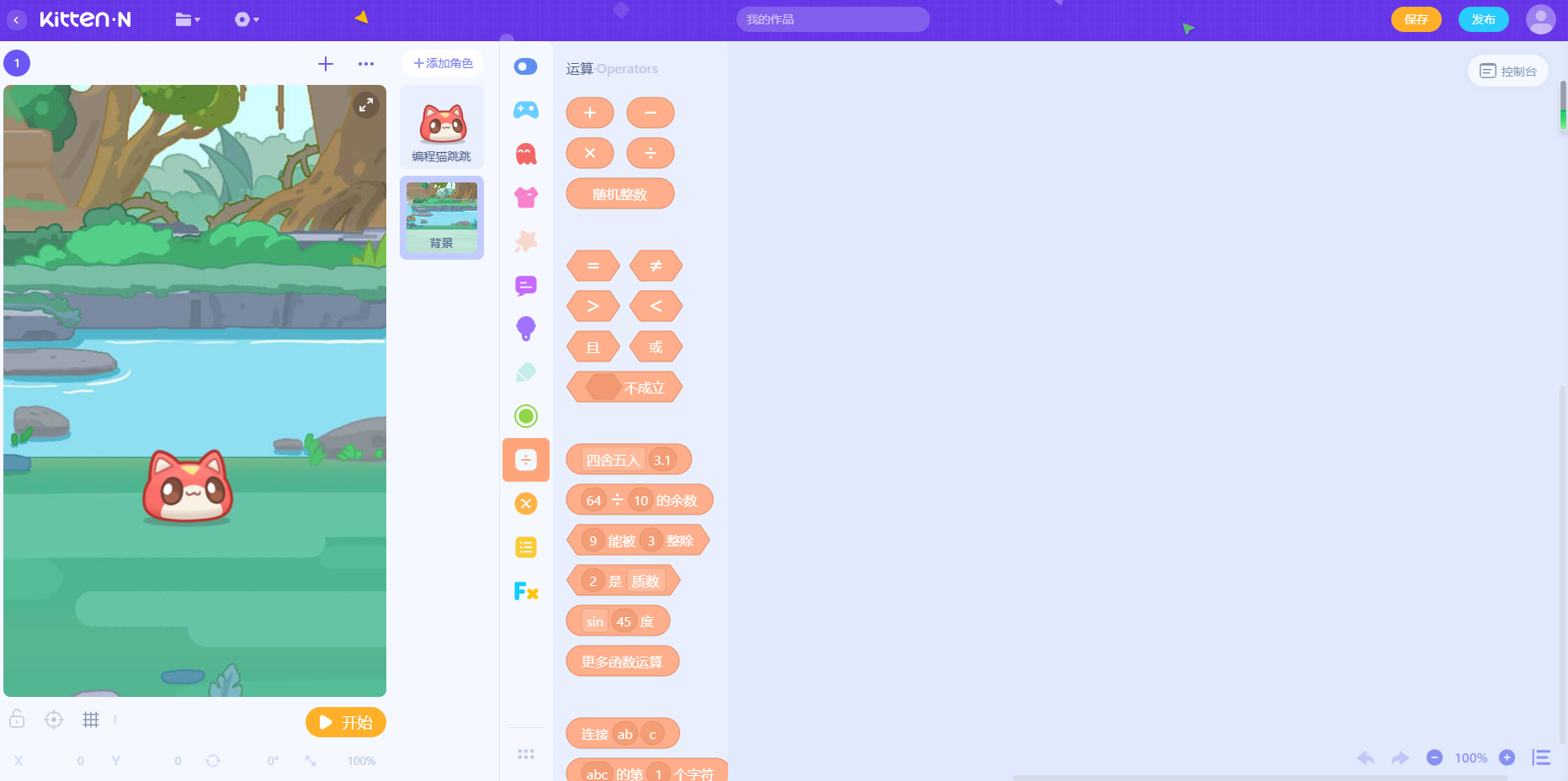 2、侧栏有丰富基础的编程功能,可以添加运行编程符号
