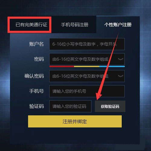 最后,如果我们以前有完美世界通行证的话,直接登录绑定就行了,没有的话也没关系,当场用手机号注册一个完成绑定即可。