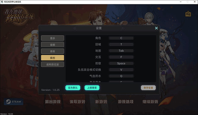 3、在设置界面的操控一栏中,玩家就可以看到角色的操控按键了;