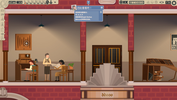 4、进入游戏后会有个新手教程,跟随引导移动摄像头查看报纸公司内部;