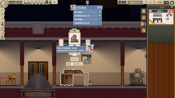 6、当记者回来后,玩家还需重建排版台和组版台,然后安排员工进行报纸排版和组版工作;