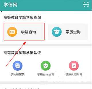 1、首先打开学信网app,点击“学籍查询”。