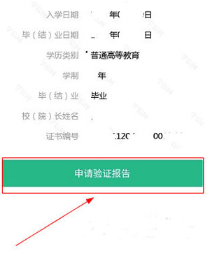 4、点击“申请验证报告”即可得到电子版的学历证明,就可以拿去打印毕业证信息了。