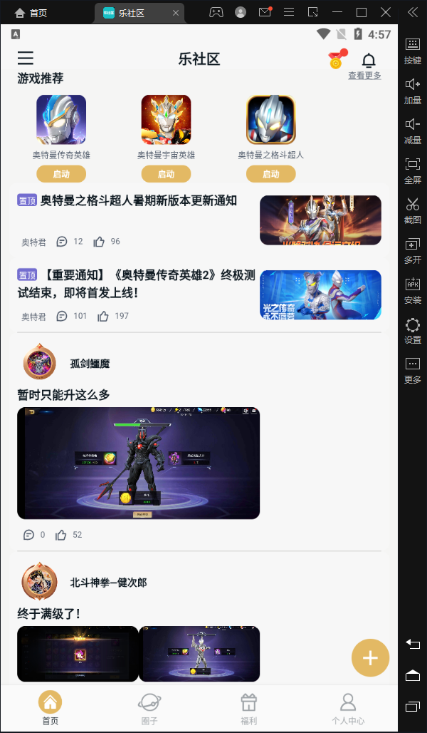 乐社区电脑版是一款专为安卓模拟器打造的游戏交流平台,尤其是奥特曼粉丝的天堂。这里有各种奥特曼系列游戏,比如《奥特曼传奇英雄》和《奥特曼宇宙英雄》,还有热门的熊出没游戏话题。丰富的游戏视频和攻略视频能帮助你快速提升游戏水平。