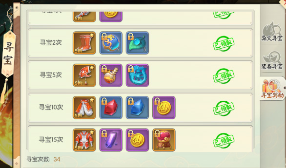 在“异火寻宝” “装备寻宝”中寻宝次数达到指定次数,便可以领取超级丰厚的奖励哦~