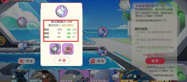 9、探险器的每个部件升级都是全队生效,可以提供不错的战力。