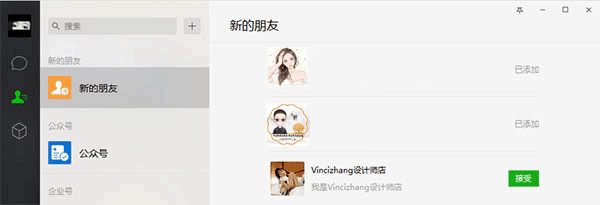 1、打开微信电脑版软件后,最左侧的“通讯录”选项,点击“新的朋友”。注:在微信网页版中,只能被动的接受,不能主动的添加好友。
