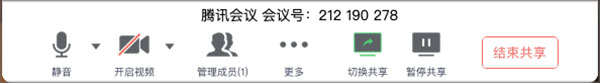 (5) 新的共享:结束当前共享并选择新的共享内容,多数用于应用共享时您需要切换到另一个应用进行共享的场景