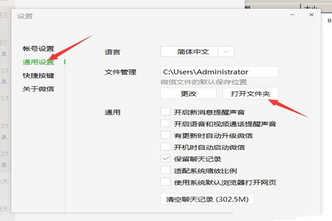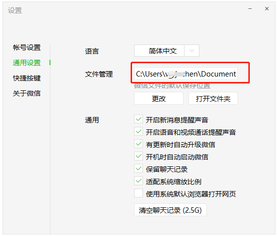 1、登录账号,从设置 – 通用设置中 找到对应路径,默认是C:\我的文档\WeChat Files\;(注:此指引适用于2.6.3版本以上的PC微信)