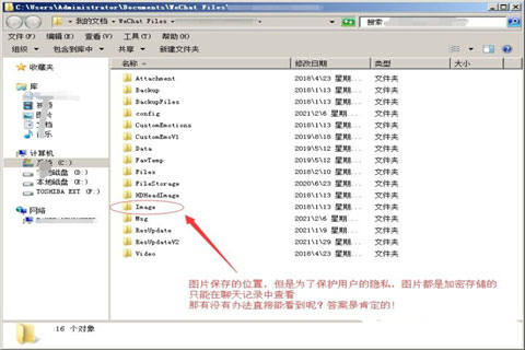 3、打开文件夹后,我们找到一个名为“Image ”的文件,里面存放的都是微信图片。