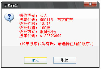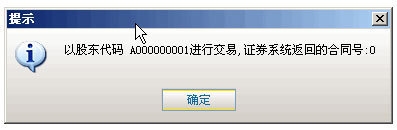 8、如果信息有误还可以取消 返回上图继续填写下单信息,如果正确,当确定之后会返回一个提示信息,内容有股东代码以及合同号,如果有其他情况则返回原因。