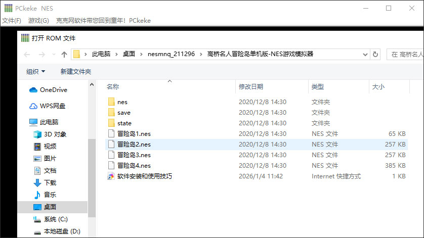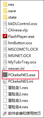 1、下载解压,得到高桥名人冒险岛电脑版,先双击运行"PCkekeNES.exe"程序;