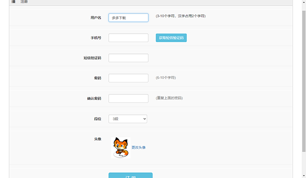 注册账号的玩家将自动跳转浏览器网页完成账号的基本信息验证,其中“段位”默认选择为三段,玩家可根据自身情况进行更换