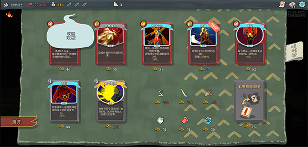 5、这里是选择的商店,我们可以购买卡牌加入牌库。