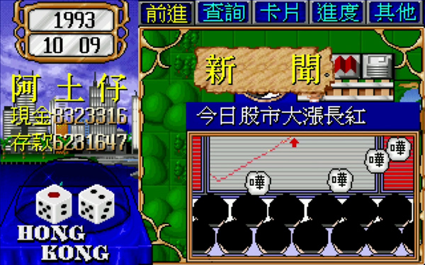 游戏一共有三个城市分别是台湾,香港,大富翁城,玩家在游戏中轮流执骰,子前进购买土地,股票,卡片等累祥财富成为大富翁。