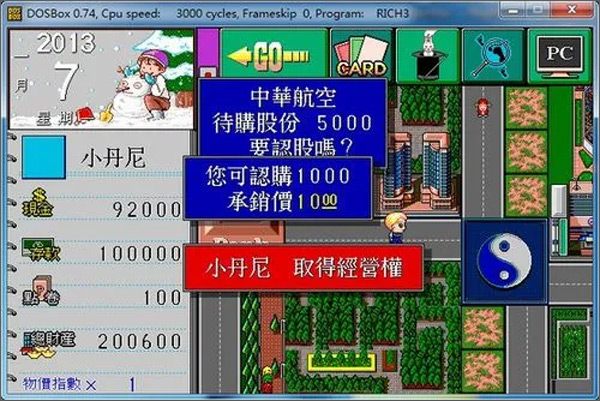 游戏玩法也变得更灵活,走路、骑机车还是开汽车,都能用不同数量的骰子决定前进步数。这种设计让游戏自由度大增。不过需要注意的是,这款游戏只能在Win7或支持DOS的老系统上运行,对硬件要求不高,但体验感依然很好。