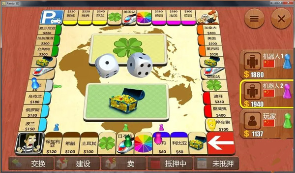 大富翁3电脑版是一款经典的益智游戏,界面华丽操作简单,继承了前作的精华。这次新增了许多有趣的元素,比如信用卡、车站等设施,还有各种新道具和角色。玩家可以选12个个性鲜明的人物,每个人都有独特的表情和台词,多人一起玩特别有趣,适合家庭聚会增进感情。