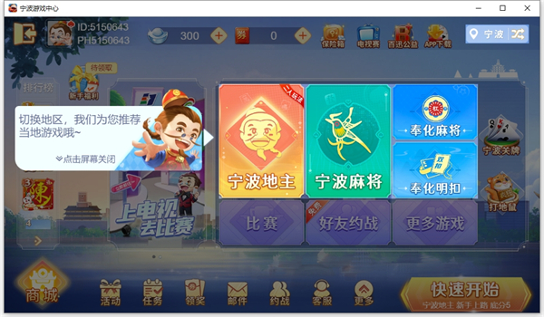 4、进入软件首页,里面为用户提供了宁波地主、宁波麻将、奉化麻将、奉化明扣等多种玩法模式;