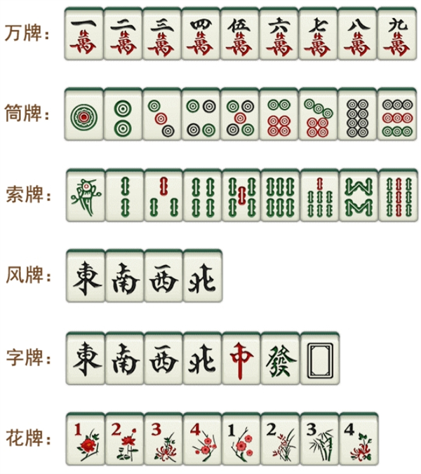 -例:翻了五万,则另外的3个五万和4个六万为百搭;翻了九万,则另外的3个九万和4个一万为百搭;翻了春,则夏、秋、冬和梅、兰、竹、菊为百搭;翻了北风,则3个北风4个东风为百搭,翻白板,则3个白板4个红中为百搭