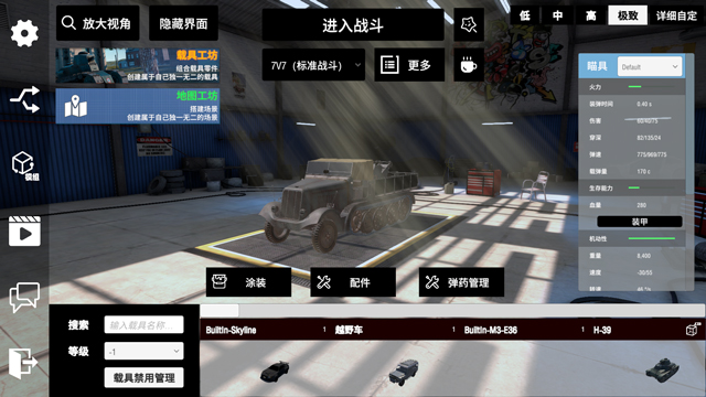 - 此外,游戏支持创意工坊功能,通过订阅模组,可以体验上百辆不同的坦克。
