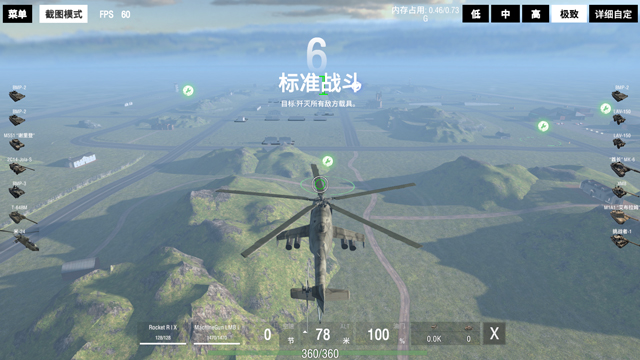 5、进入游戏如图,玩家需驾驶坦克或者直升机射击敌方载具。