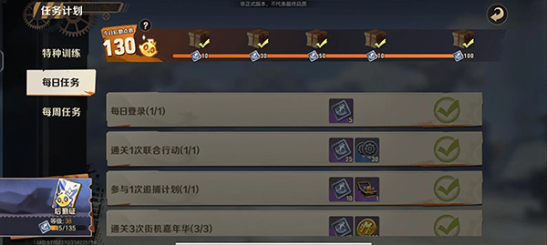 主要剧情任务——街机嘉年华——联合行动——训练计划每日任务(需要花费精力)