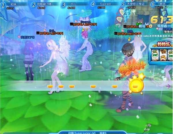 全程使用节奏操作的模式,支持4键和8键形式。屏幕中会出现向右滚动的节奏音符,此时需要正确输入不断向右滚动进入判定框中的节奏音符,节奏模式强调操作的节奏感。