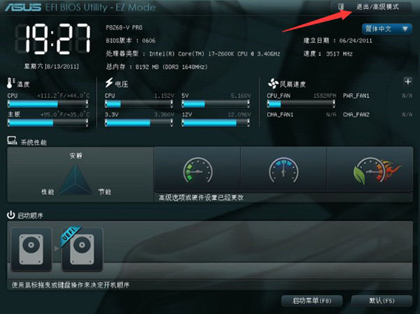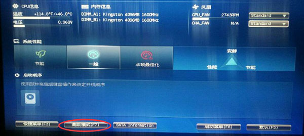 按F7进入 <高级模式> 英文是 (Advanced Mode)