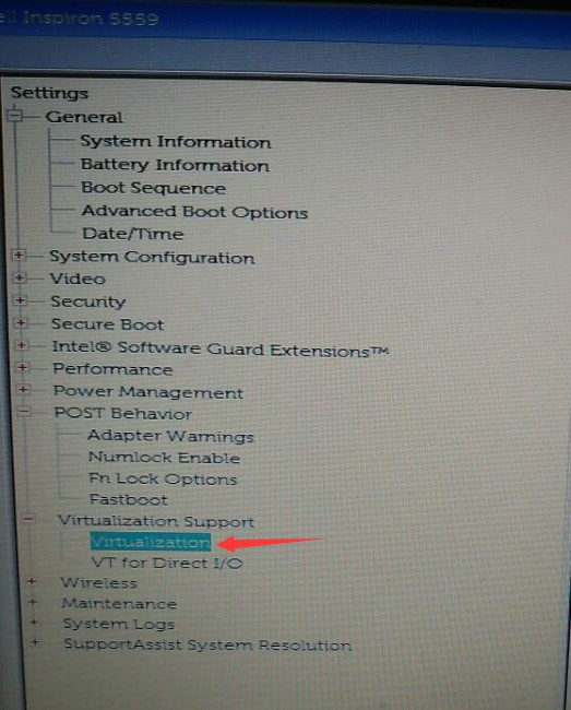 注:不同的电脑会在不同的菜单下面,主要是找到关键字 Virtual 或 Virtualization 个别情况是 VT-X 或 SVM, 参考下面的图解