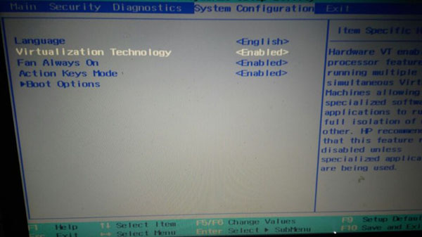 选择system configuration(系统设置)找到VT后按回车(enter)改成enabled之后按F10保存即可