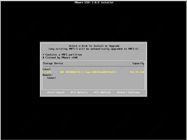 6、系统提示选择安装VMware ESXi 使用的存储,ESXi支持U盘以及SD卡安装。