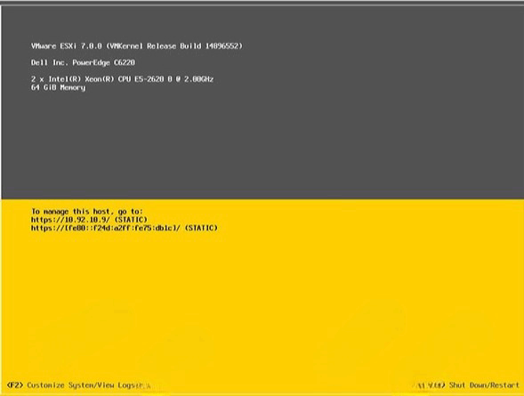 14、服务器重启完成后,进入VMware ESXi 7.0正式界面