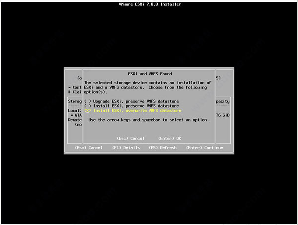 7、原服务器安装有ESXi 6.7版本,选择全新安装。