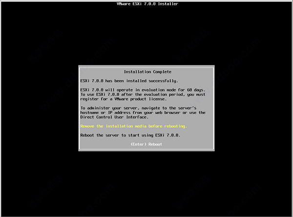 13、安装的时间取决于服务器的性能,等待一段时间后即可完成VMware ESXi 7.0的安装,按【Enter】键重启服务器。