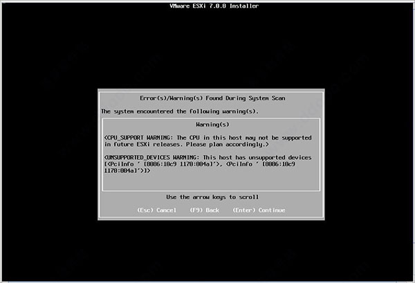 11、如果使用INTEL XEON 56XX CPU会出现一些特性不支持警告提示。