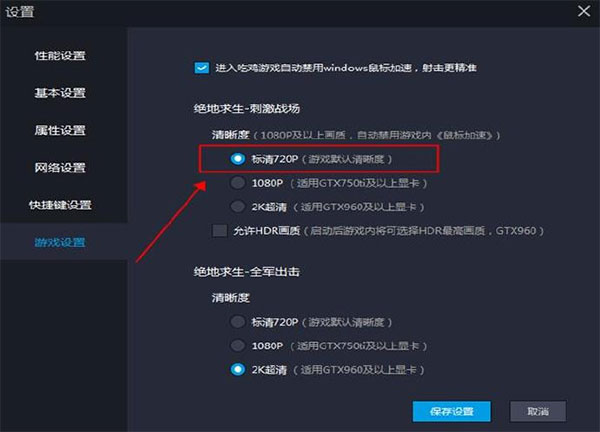 必须是登录游戏状态下,才会出现的设置:一般选择720P