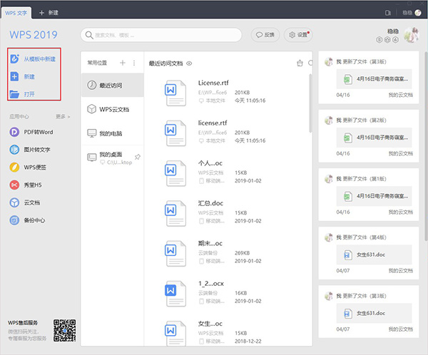 2、点击进去之后,我们可以从模块中新建、新建、或者打开已经制作的文档;