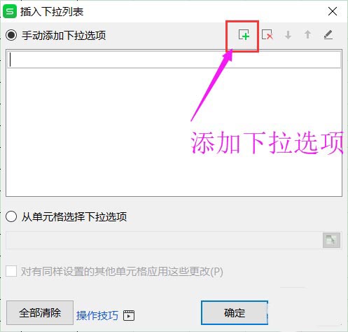 5、选择“手动添加下拉选项”,单击“添加”图标,如下图所示:
