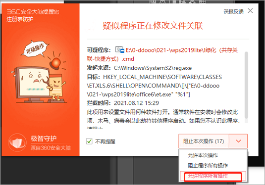 3、如果有安全软件弹出提示选择“允许程序所有操作”即可