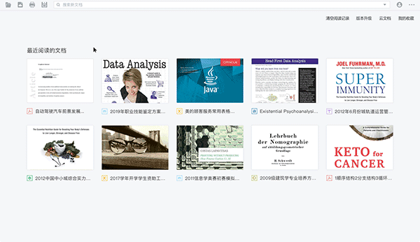 支持PDF、XPS、EPUB、mobi等30多种文档格式,可实现在线阅读、智能检索、全文复制、一键打印