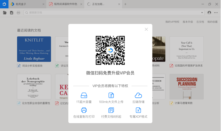 1、稻壳阅读器VIP特权