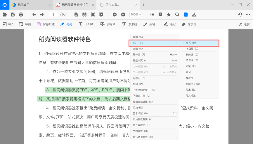 稻壳阅读器使您能够方便快捷对文档进行批注与做笔记
