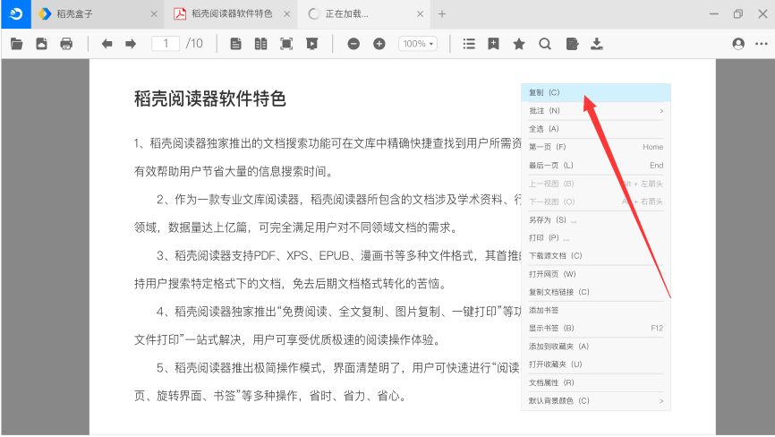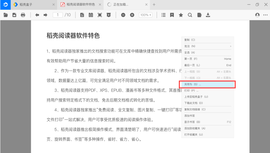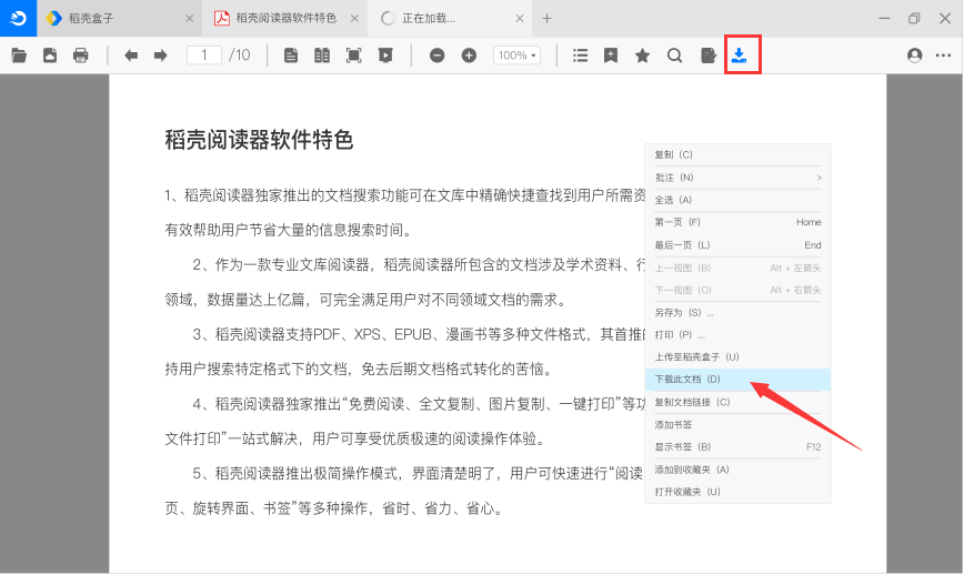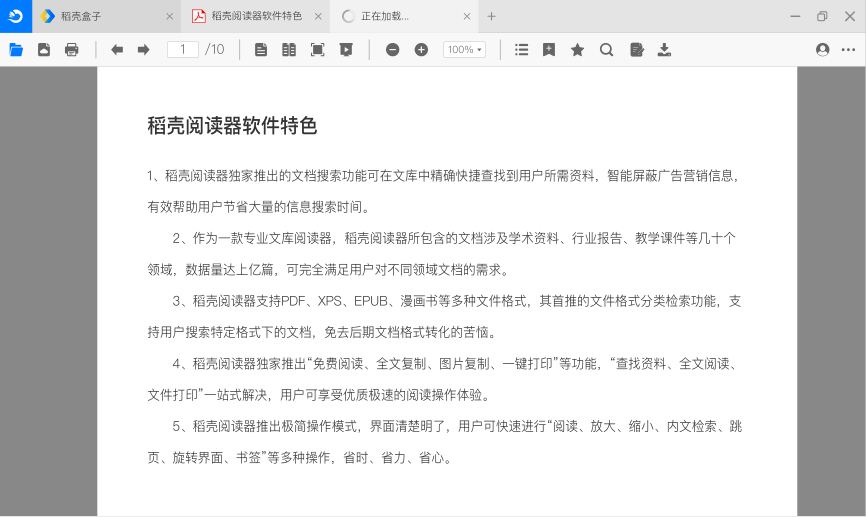 稻壳阅读器电脑版是一款面向文库的阅读软件,体积小、功能全、使用简单、启动速度快,非常适合用户在办公、学习等场景下使用。稻壳阅读器不仅支持PDF、XPS、EPUB、漫画书等多种类型文件的本地阅读,更支持用户在线精确检索多种格式文档,可实现“在线免费阅读、智能检索、全文复制、图片复制、一键打印、云端存储”等实用功能,可有效解决用户找文档难、复制难、打印繁琐等问题。