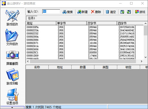 4、第一次查询结果会有很多地址,需要在此基础上进行再次查询,按Esc再回到游戏中继续玩一会,等那个数值发生变化,再弹出游侠,再次输入改变后的数值,这样就可以缩小地址范围。一般情况下输入两到三次就可以确定出具体的地址了;