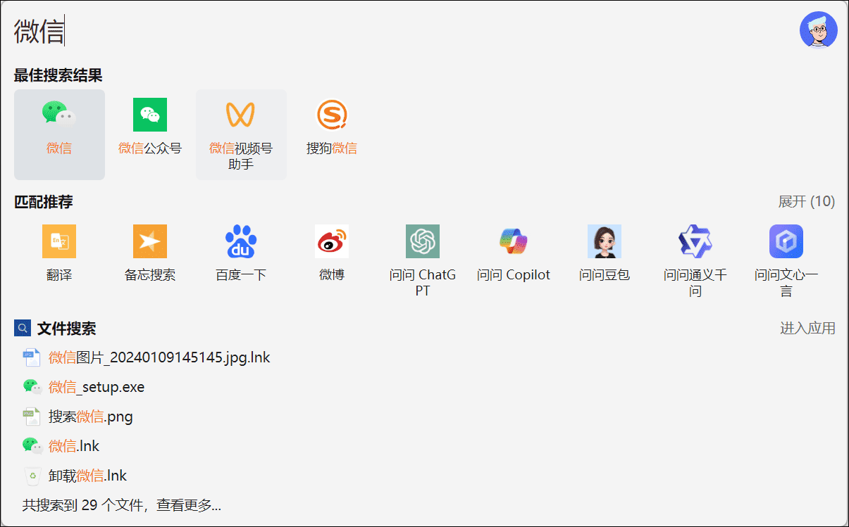 (2)uTools 很贴心地对中文做了特别优化,支持拼音、拼音首字母、英文、英文驼峰搜索。总之,你只要还记得一个大概的名字,直接输入基本都能找到,可以大大提高启动程序的效率。
