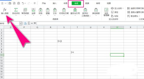 3、选中另一个单元格,点击"公式"->"插入函数"。