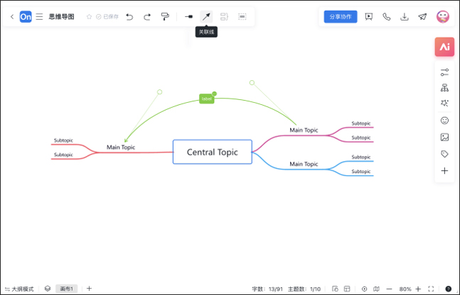 思维导图在线制作简单便捷,支持多人协同创作,还可以分享链接,信息实时传递。